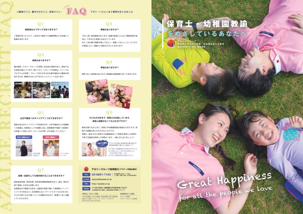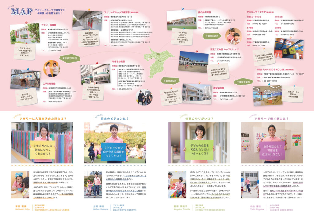 関東で福祉・教育・医療施設を運営するアゼリーグループの保育職向け新卒採用パンフレットを制作しました。